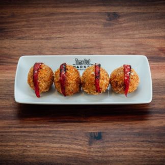 Croquetas de chuletón de vaca a la parrilla con pimiento del piquillo caramelizado