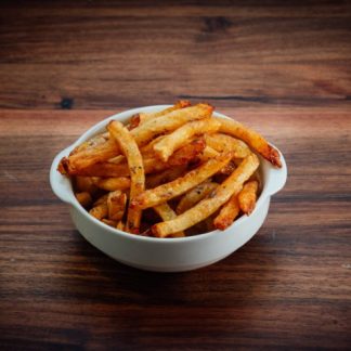 Hamburguesa de carne de buey el Capricho marcada a la brasa, pan brioche, bacon a la brasa, queso cheddar y salsa emmy picante con patatas