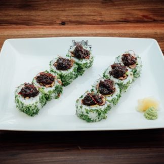 Tartar de atún, cebolleta y salsa picante (6 piezas)