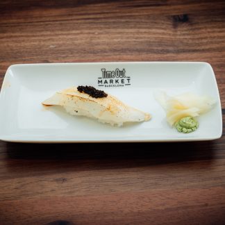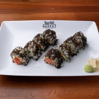 Tartar de atún, aguacate, pepino, queso crema y tobiko