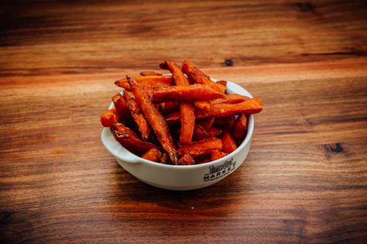 Boniato frito con sal especiada acompañado de salsa mayo-kimchi