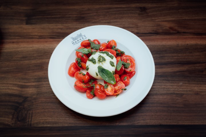 Burrata with Tomato and Pesto.