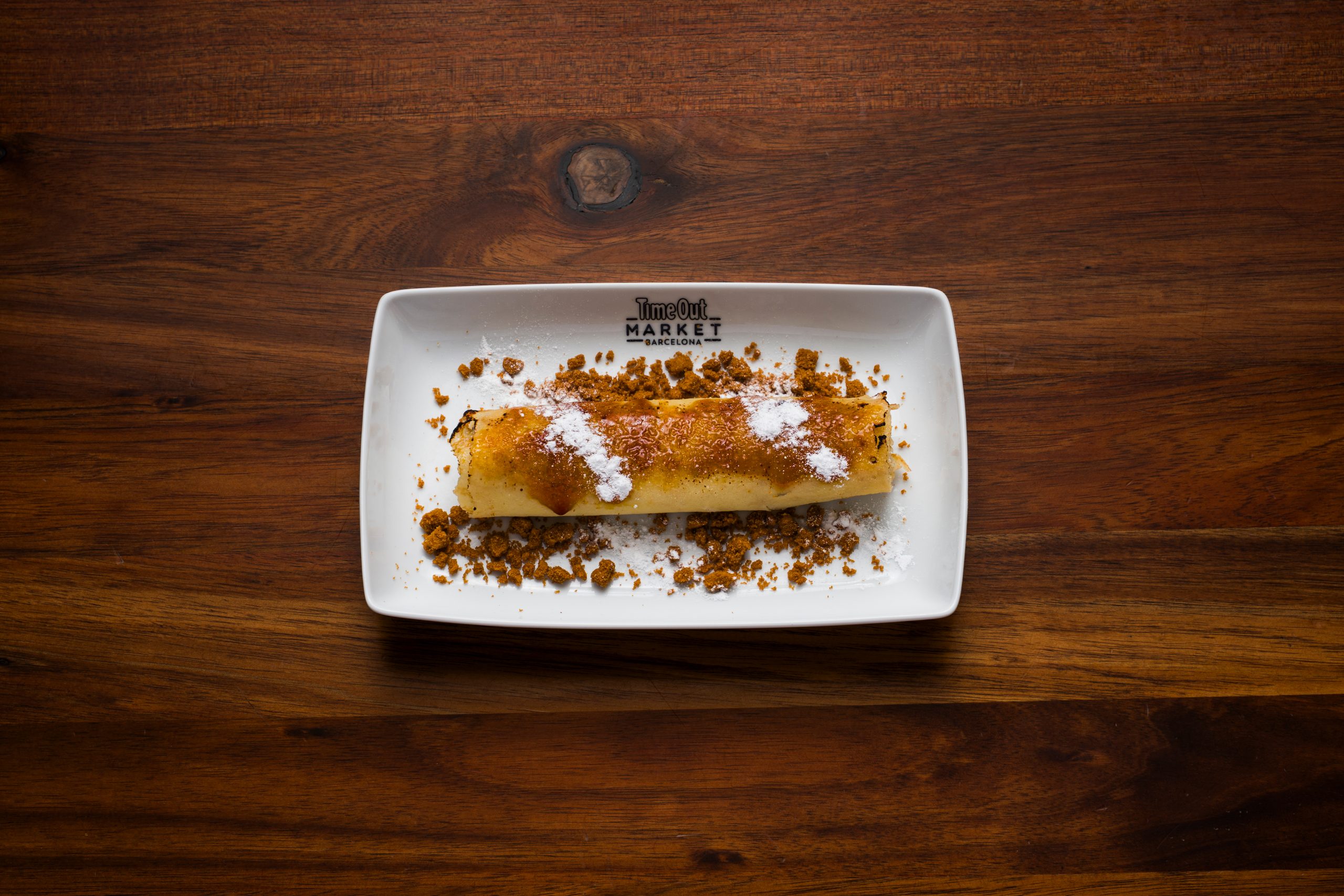 Classic Argentine dessert of crepes filled with dulce de leche and Lotus crumble