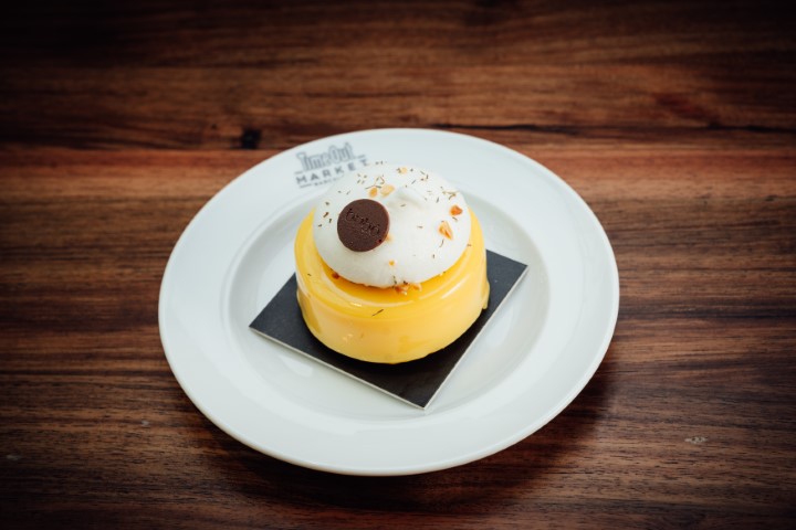Pastel elaborado con una base de streusel de almendras, fina galleta y vainilla de Madagascar con interior de bizcocho de aceite de oliva y limón confitado, una suave crema de limón y recubierto