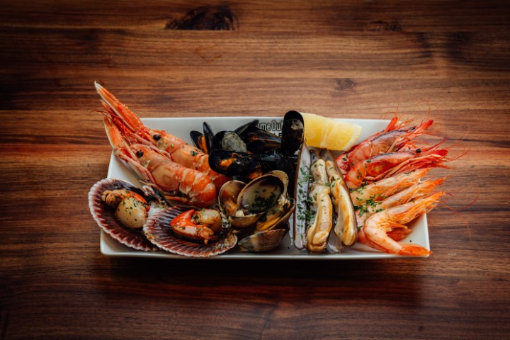 Mariscos a la plancha con perejil, sal, pimienta y limon