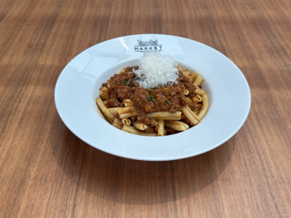 Pasta casarecce con nuestra salsa boloñesa casera de carne y tomate, cocinada a fuego lento con verduras frescas y hierbas aromáticas.