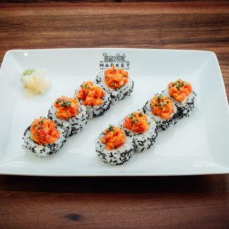Tuna, avocado, and cream cheese, topped with marinated tuna.