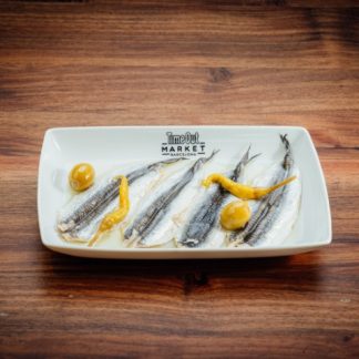 Anchoas xxl en salmuera sin espinas y a lomos con dos olivas