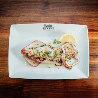 Calamares a la plancha con perejil, sal, pimienta y limon