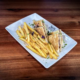 Sándwich de salmón marinado en soja y ajo negro con salsa tartara