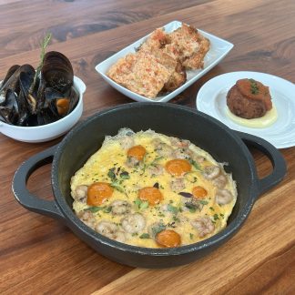 Solomillo a la plancha, kale, foie gras, cebolla y crema de trufa